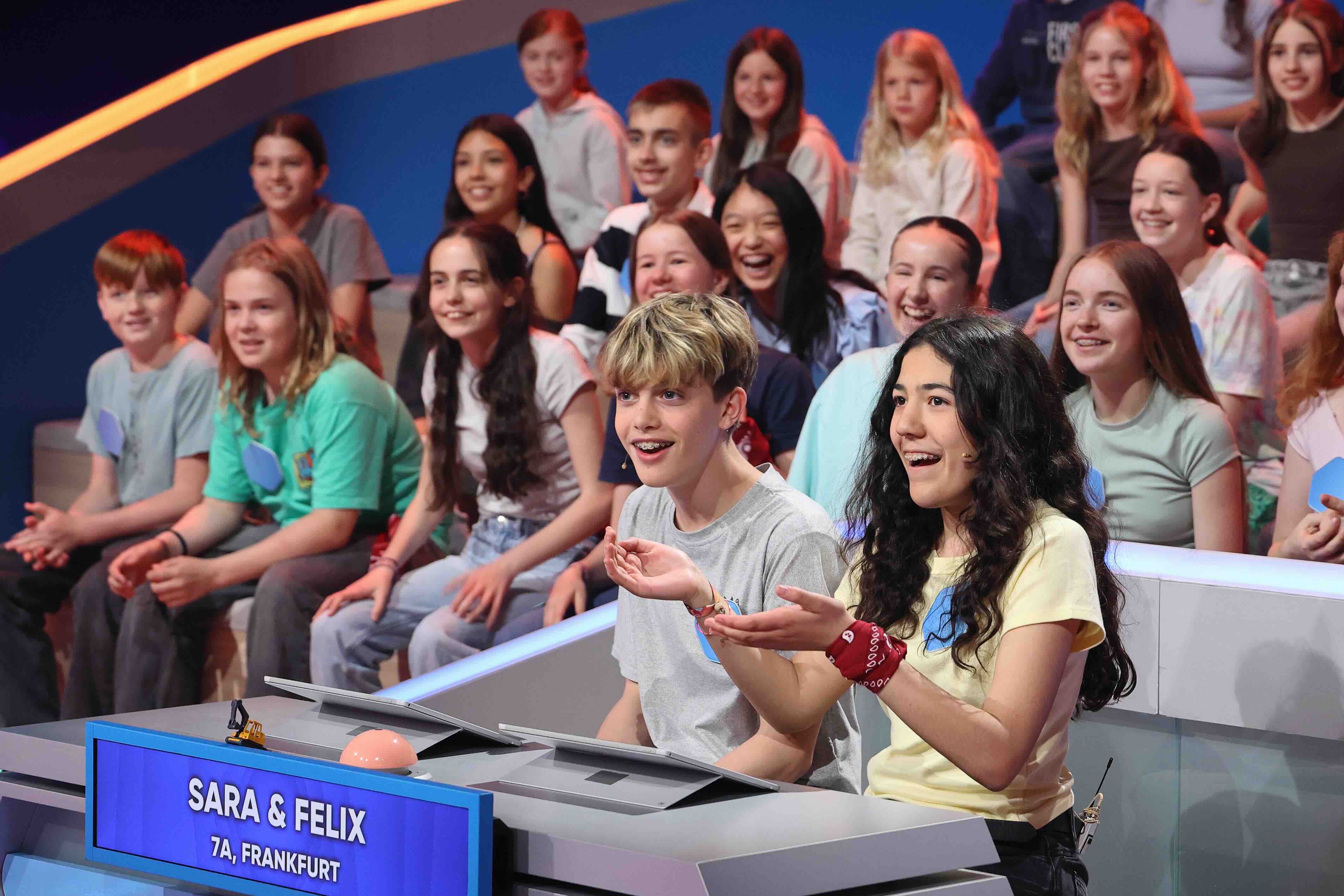 Denn so eindeutig wie der 50:0 Sieg, den die Klasse 7a im Schulbattle (der vorangegangenen Qualifizierungsrunde zur Wochenshow) feierte, gestaltete sich das Weiterkommen in der Wochenshow nicht. Beeindruckt und beeinflusst von der Fernsehwelt der KiKa-Studios in Erfurt zeigte sich die 7a während der Wochenshow ehrgeizig, begeistert und motiviert sowie aufgeregt und angespannt. Bis zur letzten Runde der Quizshow war noch alles offen – geht der Sieg, und damit der Einzug ins Finale, nach Frankfurt oder gewinnt die gegnerische Klasse aus Erfurt das Heimspiel?