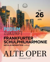 Im Rahmen des Jugendorchesterfestivals „Podium Zukunft“ der Alten Oper spielt das Orchester der Elisabethenschule zusammen mit den Orchestern dreier anderer Gymnasien aus Frankfurt am Sonntag, 26.04. 26,um 11:00 Uhr unter dem Namen „Frankfurter Schulphilharmonie“ ein Sinfoniekonzert im Großen Saal der Alten Oper unter der Leitung von Nikolai Bernstein.