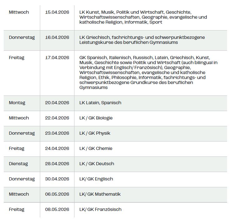 | Geva-Test (E2 und Q2) | Di, 23.06.2026 (dann wieder 2028) |