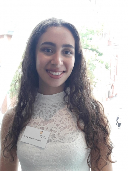 Unsere Schülerin Lucía Parisek Jiménez wurde bei der Abschlussfeier des Kollegs für junge Talente von der Stiftung Polytechnische Gesellschaft feierlich verabschiedet. Damit endete ihr einjähriges Studium Generale, bei dem gemeinsam mit SchülerInnen anderer Schulen künstlerische, technische, mathematische, gesellschaftliche und politische Fragen ergründet und auch Themen nach eigenem Interesse in Gruppen behandelt wurden.