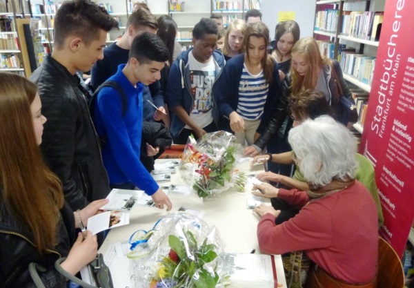 Bereits die Entstehungsgeschichte dieses Werkes zog die über 50 anwesenden Neuntklässler beider benachbarten Schulen sogleich in den Bann: Gerti Elias erzählte, wie sie vor einigen Jahren auf dem Dachboden ihres Hauses in Basel zahlreiche Briefe, Postkarten und Fotos entdeckte, die sich als Zeugnisse der Familie Frank aus zwei Jahrhunderten herausstellten.