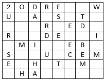 1. Wenn das Buchstabenpaar in derselben Zeile der Tabelle zu finden ist, nehmen wir die Buchstaben, die an der rechten Seite des Buchstabens ist. Wenn der rechte Buchstabe am Ende der Zeile steht, nehmen wir den Ersten in der Zeile. Beispiel: D und I sind in der ersten Reihe, wir nehmen deshalb A und T.