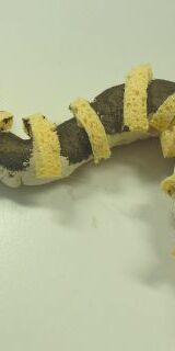 Ein Junge aus der 5a hat eine Wirbelsäule aus verschiedenen Gummibärchen gebaut. Damit hat er gierige Blicke der Klassenkameraden geerbt.