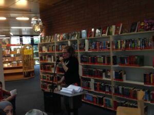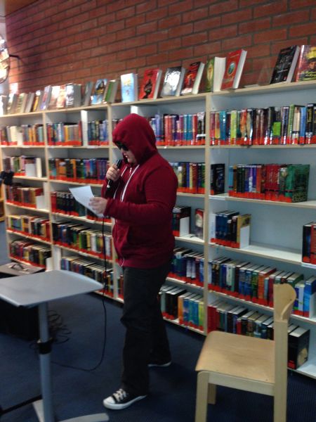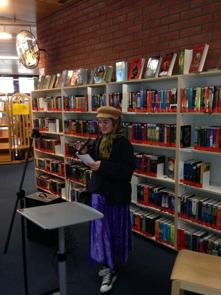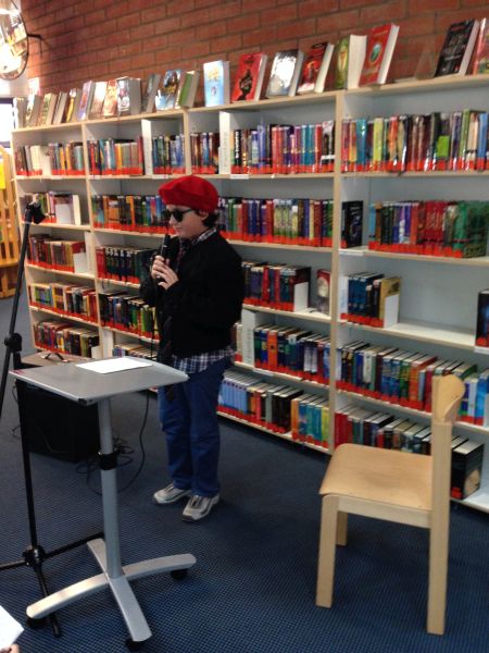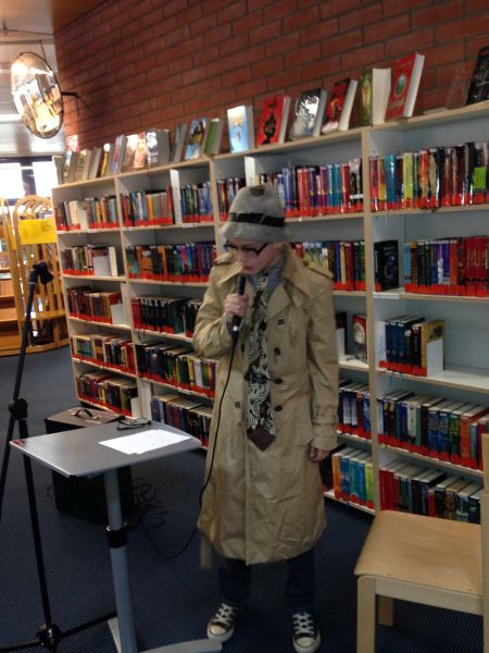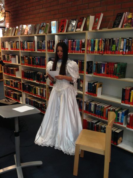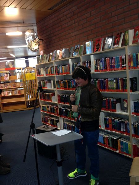 Am Montag, den 28.10.13 fuhren wir (die Klasse 7a) zur Zentralen Kinder- und Jugendbibliothek in Bornheim. Dort begrüßte uns eine sehr nette Bibliothekarin, Frau Schmidt. Sie erklärte uns, wie wir Texte kreativer schreiben und vortragen können. Um es uns zu verdeutlichen, trug sie auch selbst verschiedene Ausschnitte aus Büchern vor. Sie verstellte zum Beispiel ihre Stimme, sodass sie wie ein Mann klang, sprach mal leiser, mal lauter oder machte die passende Gesten zum Text. Hinterher stellte sie uns verschiedene Schreib-Stationen vor, an denen wir selbst kleine Geschichten schreiben sollten. An einer Station sollten wir z.B.Wörter aus einer Salatschüssel „ziehen“ und aus ihnen Geschichten schreiben („Wortsalat“). An einer anderen konnten wir einen Text weiter erzählen („Ketten-Story“). Auf der Homepage der Bibliothek konnten wir auch zwei angefangene Geschichten weiter schreiben („Cliffhanger-Buchshow“).  Zum Schluss durften wir unsere Geschichten vortragen, dazu hatten wir die Möglichkeit uns zu verkleiden. Dies war sehr lustig!
